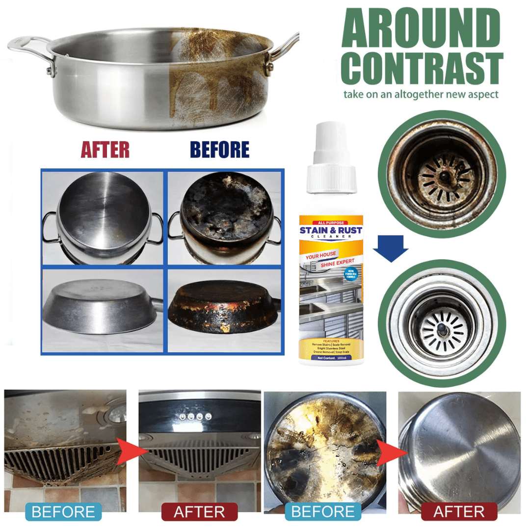 Transform your cleaning routine with our All-Purpose Stain Cleaner & Derusting Spray – your new partner in making your home sparkle effortlessly!