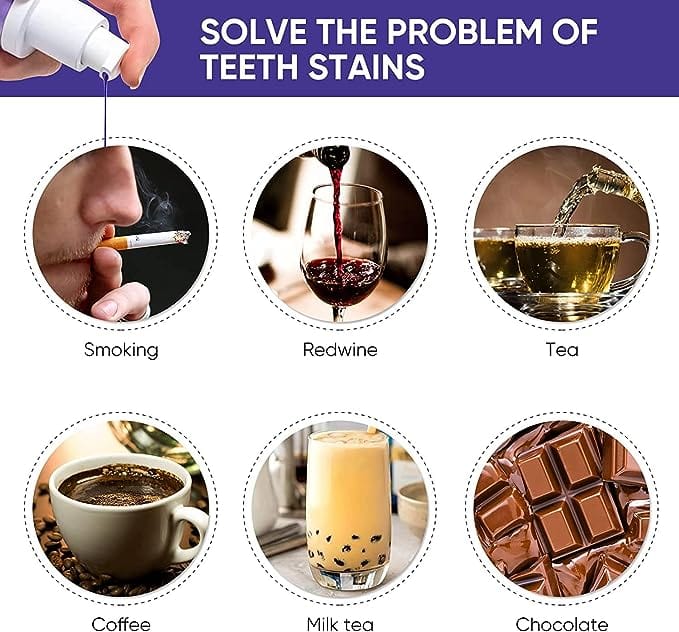 This innovative toothpaste combines advanced technology. Purple is directly opposite yellow on the colour wheel and is, therefore, its complementary colour, so with this Purple Toothpaste like product, a water-soluble purple dye is applied to your teeth to cancel out any yellow undertones and its effective ingredients to combat tooth discoloration caused by various factors such as coffee, tea, wine, tobacco, and aging. This innovative product utilizes cutting-edge color correction technology to neutralize yellow undertones and enhance the whiteness of your teeth.